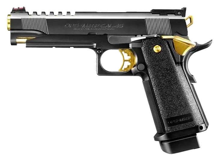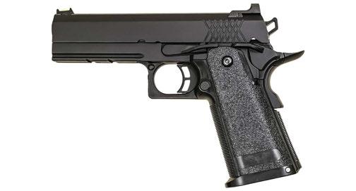 The first pistol placed in my hand was the Modify Trinity. This 1911/Hi-Capa pistol is aimed at the target shooter with its natty hop adjuster tool, I really liked this. Its alloy slide and poly grip felt good and well weighted in the hand. This pistol will run on green gas and chuck plastic death down range at about 310/315fps. Then we looked at the CZ TS2 pistol. This thing was a heavy old girl in the hand. This pistol is again aimed at the target shooting community with its duralumin sliver grips, they did feel good. For me this was a bit on the heavy side but I’m not their demographic for this pistol.