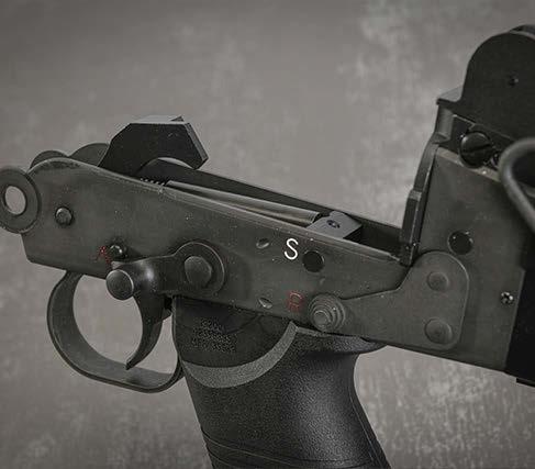 “THE TOP OF THE HANDGUARD IS A STANDARD RAIL, AND THIS CONTINUES UNINTERRUPTED TO THE REAR OF THE UPPER RECEIVER WHERE YOU’LL ALSO FIND AN AR-STYLE CHARGING HANDLE; LOTS OF SPACE FOR OPTICS AND ACCESSORIES EVEN ON A SMALL-FOOTPRINT PLATFORM”
