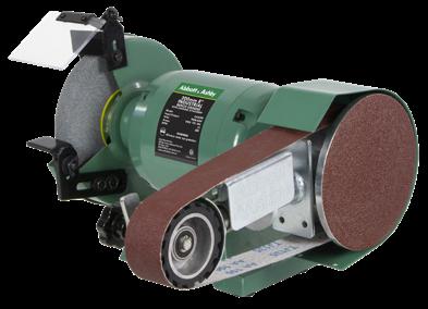 • 915 x 50mm linisher • Cast iron body and base • Vibration absorbing pads on base • Capacitor start-run motor • Heavy duty tool rests • Large eyes shield for increased user safety