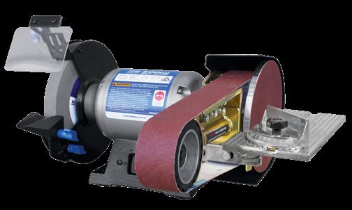 • 915 x 50mm (36 x 2”) belt – 240 Grit •178mm (7”) diameter disc – 120 Grit • 89mm (3.1/2”) contact wheel