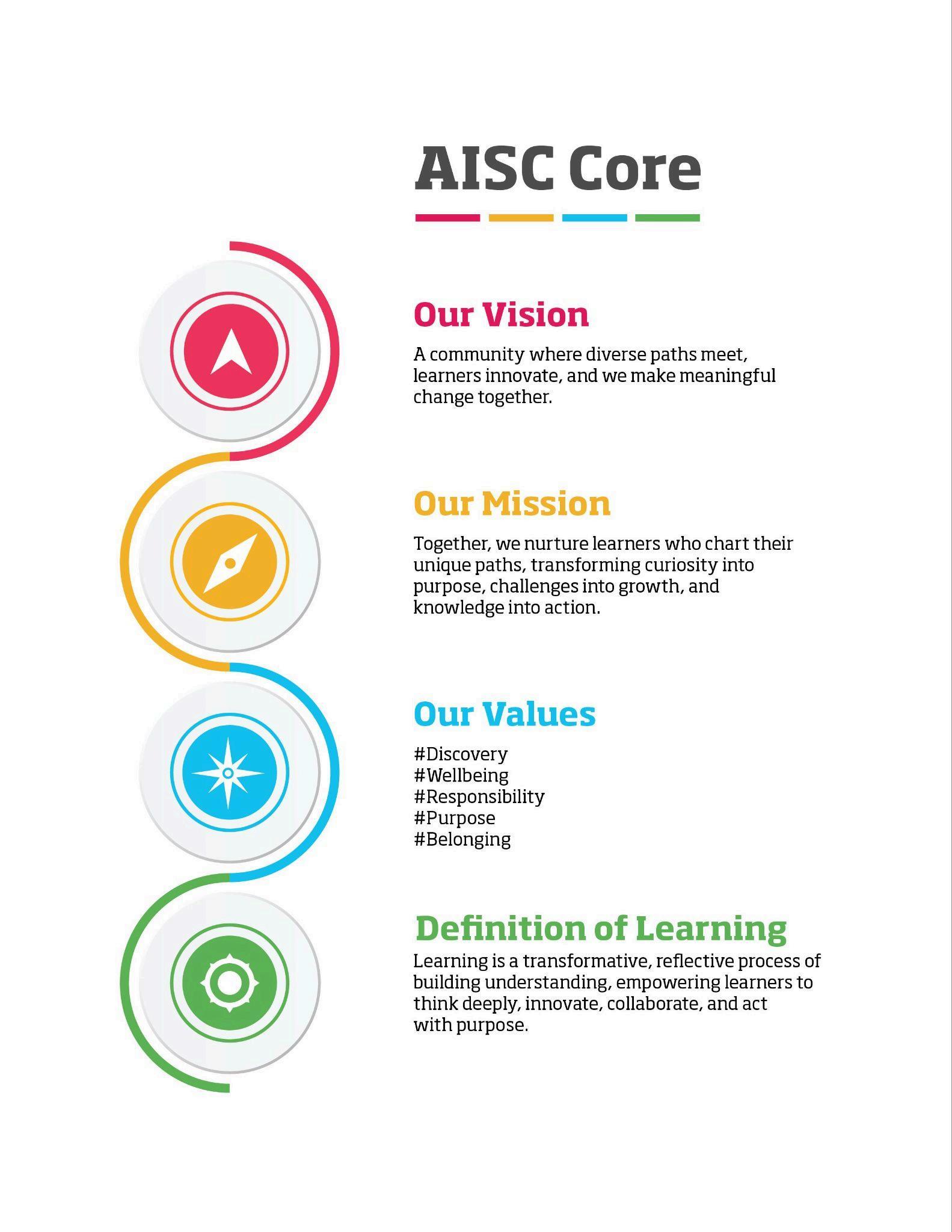 ● Demonstration of alignment with AISC’s Core (Vision, Mission, Values, and Definition of Learning)
