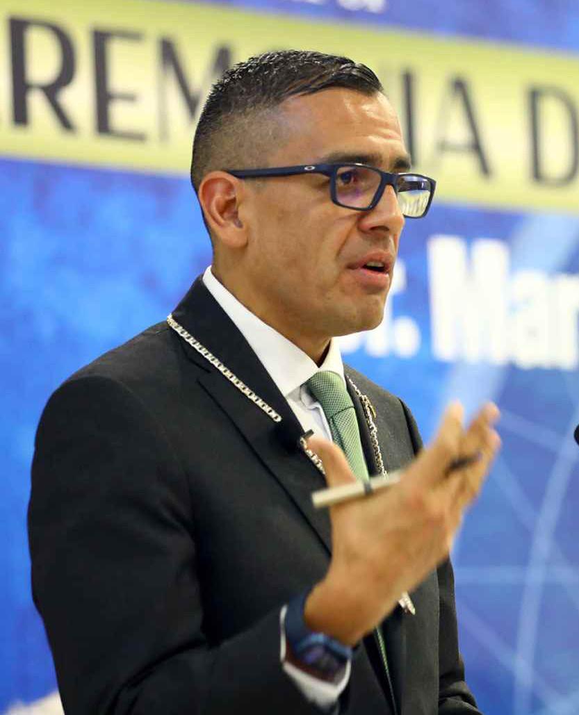 Este acto protocolario contó con la presen cia del Rector de la Universidad, Santos Guz mán López, quien entregó al nuevo directivo la medalla venera, en Sala Polivalente de dicha escuela.
