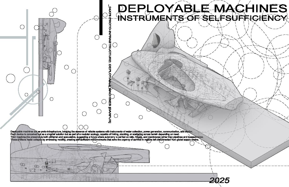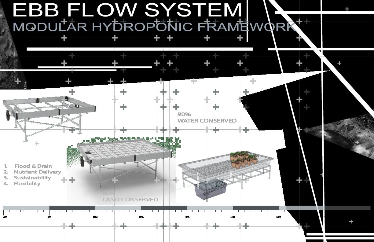 The Hydroponic Development Lab investigates how modular architectural systems can support research, testing, and education in controlled-environment agriculture. Evolving from earlier work on deployable farming units, the project now functions as a science academy and testing campus for hydroponic innovation. A programmable framework organizes site operations, allowing modules to assemble, scale, and reconfigure in response to environmental and research demands. Each unit integrates the Ebb & Flow hydroponic cycle, forming a distributed network that circulates water, nutrients, and data across the site. Rather than imposing a fixed form onto the landscape, the architecture adapts with it—creating a light, repeatable, and ecologically productive system for developing next-generation agricultural technologies.
