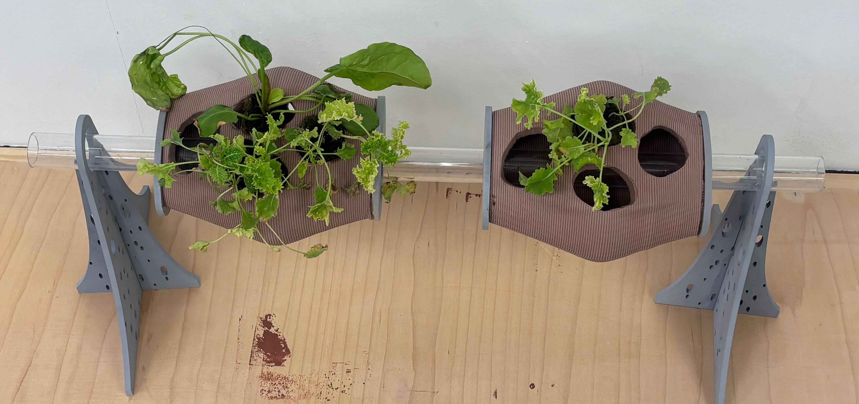 This system uses an ebb-and-flow hydroponic setup built around 3D-printed clay modules that can be placed, rotated, or removed as needed. Each module acts as a self-contained planter, periodically flooding and draining to support root health. These modules are housed within a layered outer shell that creates a stable microclimate and supports multi-level hydroponic growth. Together, they form a flexible, adaptable environment for a wide range of plants and growth cycles.