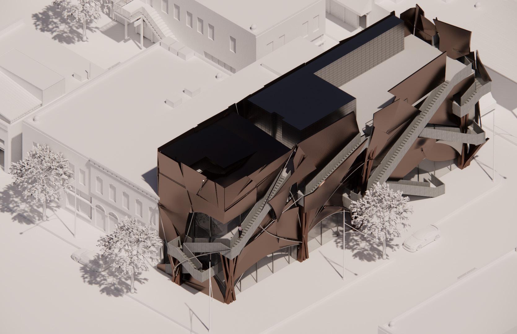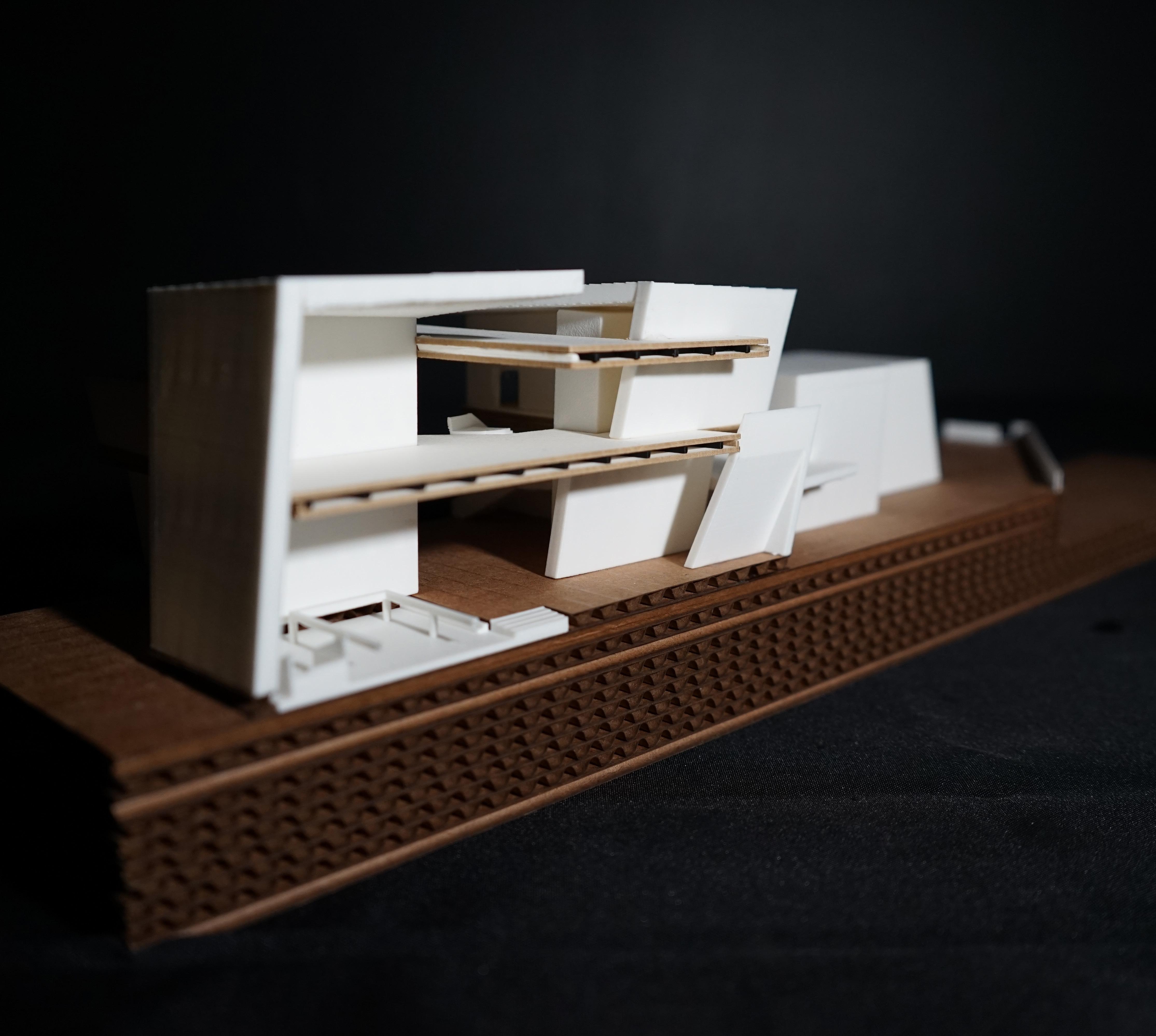 The proposed museum in Fort Worth is a bold architectural statement exploring the theme of extinction through dynamic forms inspired by OMA’s Casa da Música and Peter Eisenman’s House X. Its design centers on the concept of “shift,” with intersecting planes and angular disruptions symbolizing transformation and imbalance, while materials like concrete, glass, and metal evoke both fragility and permanence. Serving as a cultural hub, the museum invites reflection on humanity’s impact and the inevitability of change through immersive, thoughtfully crafted spaces.