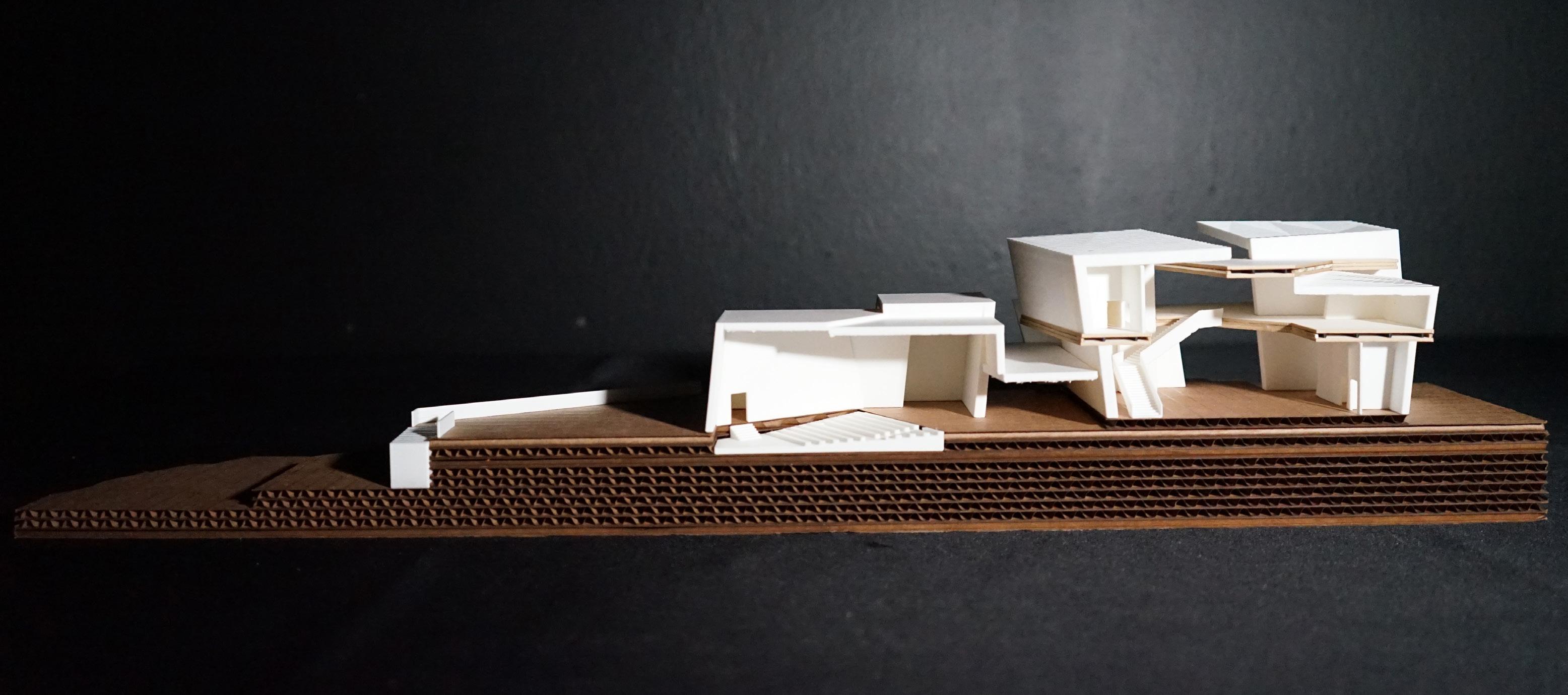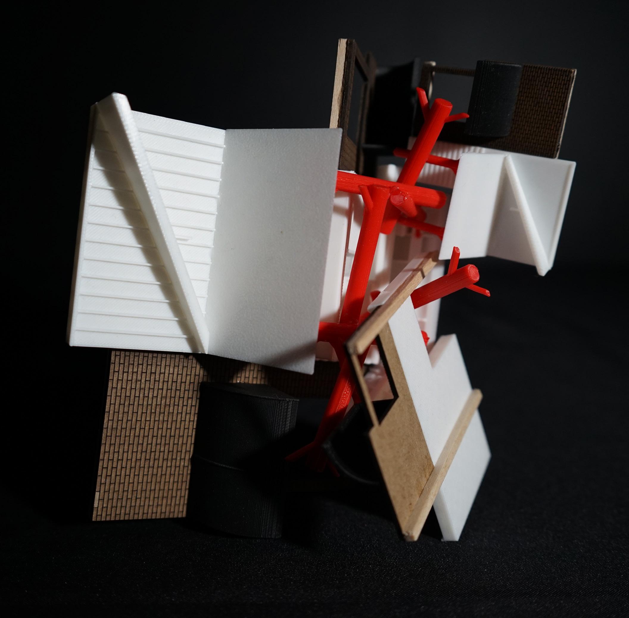 This modular construction began with a study of two precedent projects: a residential buidling and a larger corporate structure. Elements of both projects were to be selected and incorporated into the work. A singular module was to be created that used a minimum of four elements of each project. Afterward, a structure was to be amassed using nine of the created modules. The assignment was to create an art studio / school in the arts district in downtown Lubbock, on a lot owned by the Charles Adams Art Studio.