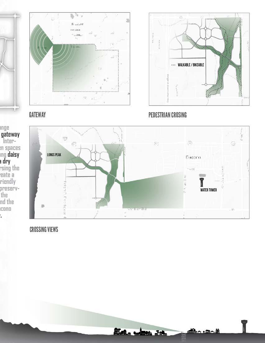 the site emerges at the epicenter of two grids. one diagonal stemming from downtown denver and the other orthogonal from the highland residential community. this represents the intersection of two forces one mainstream and the other against the grain and the struggle between the two to establish order and status quo.
