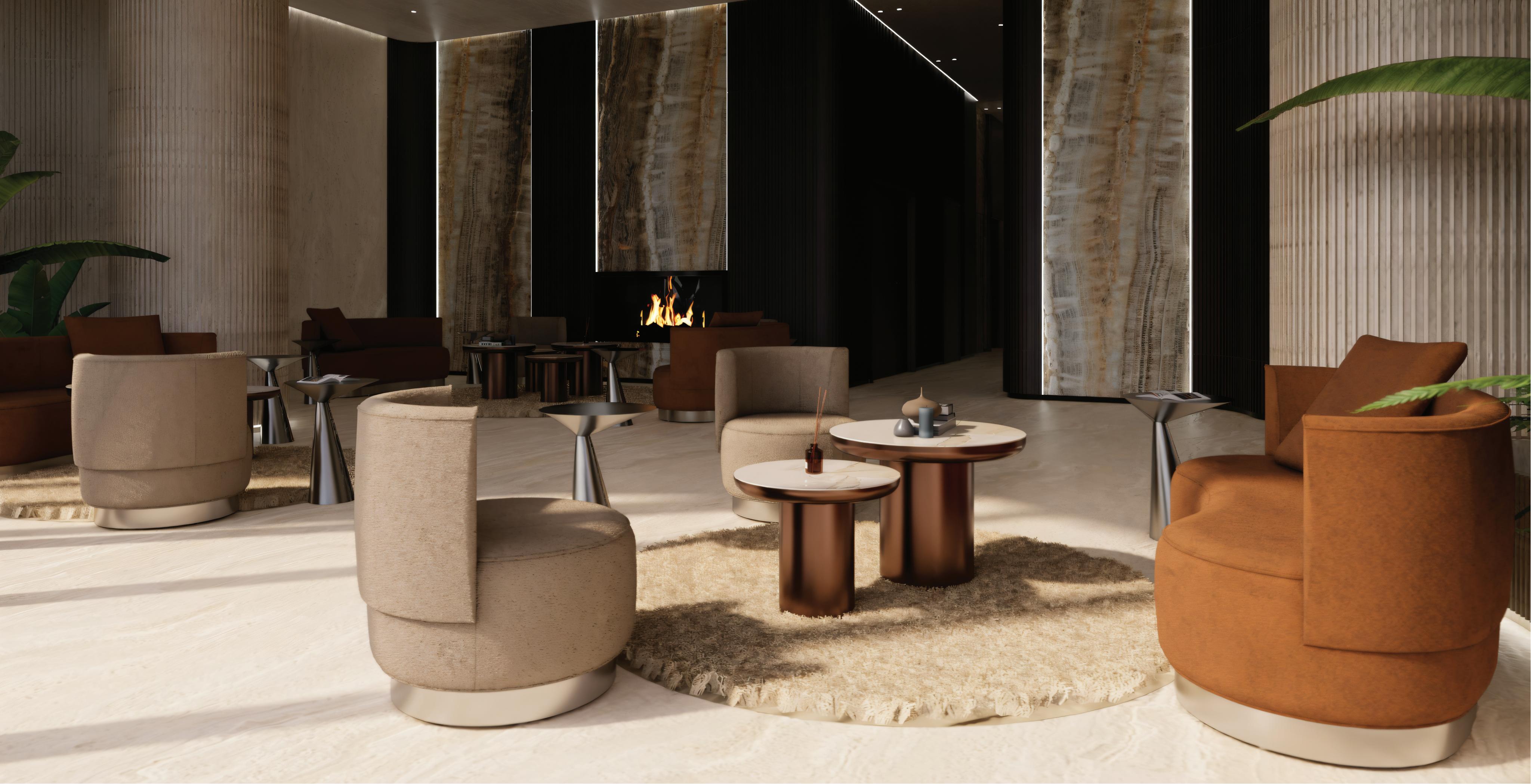 The biggest challenge in this design was selecting materials that could balance durability, warmth, and visual cohesion across the space. Careful coordination of stone, wood, and soft textures shaped the character of the lounge, creating a comfortable environment for gathering and relaxation with a refined residential feel.
