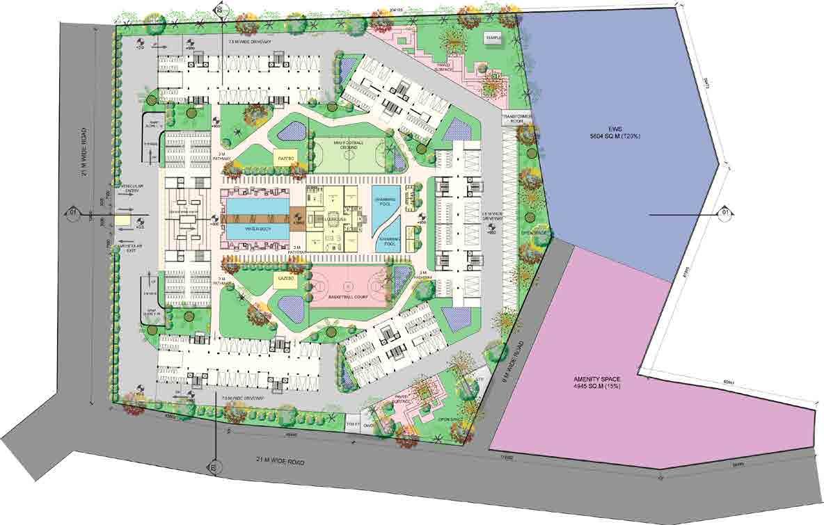 Corner Site - 32970 sq.m Defining EWS and Amenity space. Defining open space and internal road.