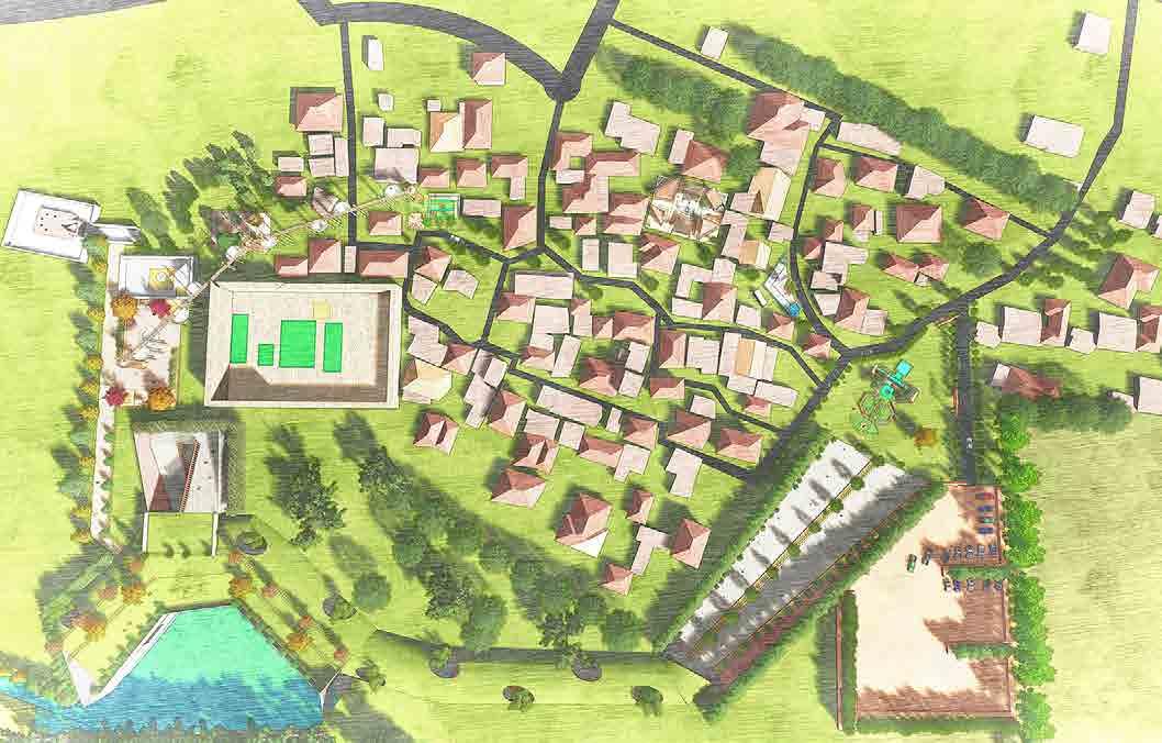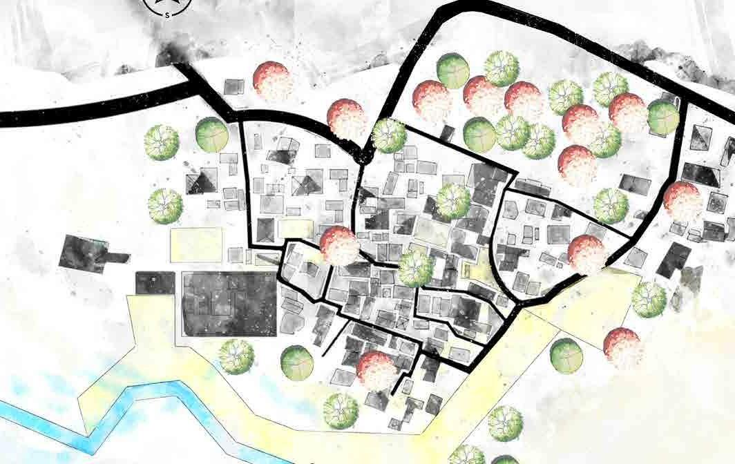 Design concept is derived from the feeling of bringing the forest and cultural tradition back to the village. The village having such a strong history and background had lost its assets to the social pressures of development and growth. Hence there arose a need to reactivate the core elements that make this village’s character and identity ( social and economical , political and administrative cultural and religious, geographical and architectural ). major focus is established to bring the lost forest cover back to the village along with new sustainable design proposals that are salvaged from the wreck and reused to build architectural elements.