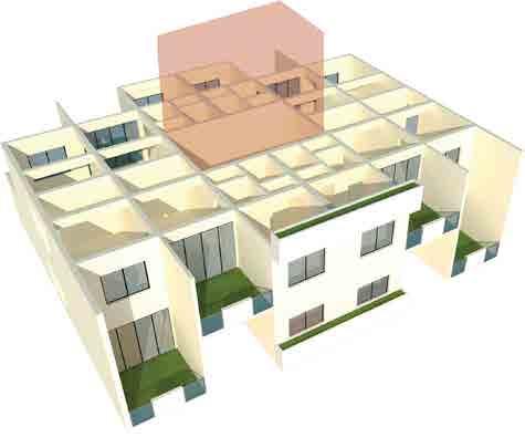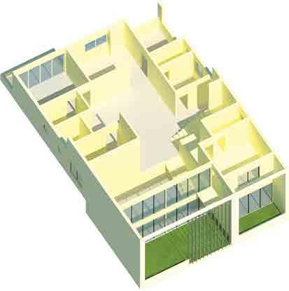 This allowed me to integrate the atrium as green zone bring the hill into the building and take views out from the atrium and from the rooms into the landscape.
