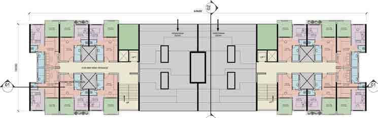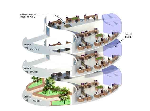 The lower couple of floors are designed with retail shops to provide a barrier free environment as they face maximum footfall.