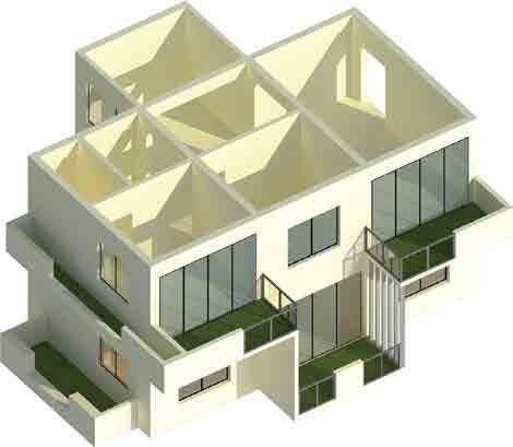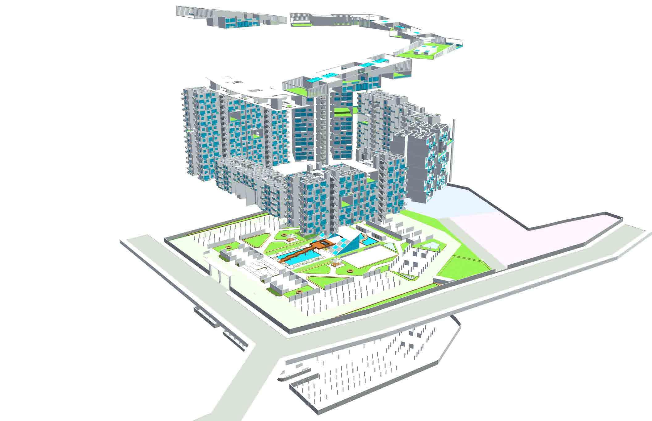 The structure has been designed in with respect to its elevation to make it more efficient in terms of the sunlight, wind and also enchancing the spatial quality of the spaces with the views. The mass here gives the definition to the structure rather than the planning.