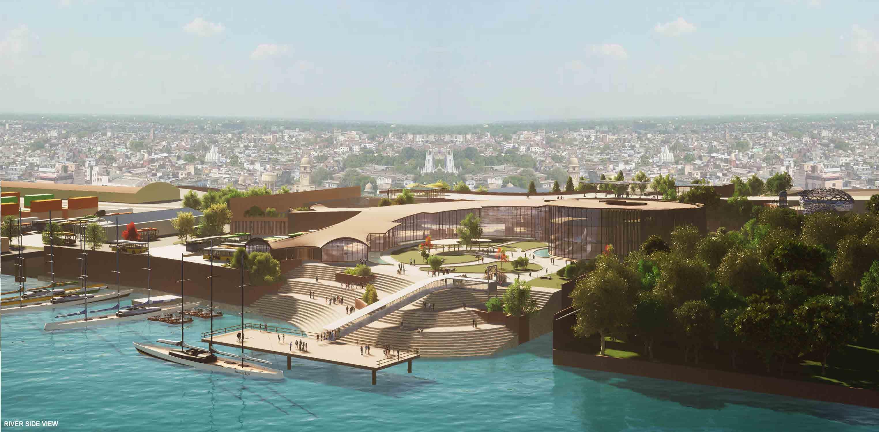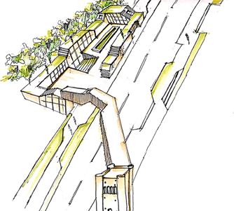 I sloped the building down from the hill and added an amphitheatre to merge the hill and integrate that with the building.