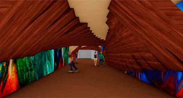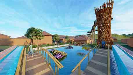 Tunnel – a derelict tunnel is reactivated as a tourist hub to increase the economic activity of the village and bring in the required footfall for tourism. The natural slope of the tunnel is maintained to prevent any site disturbances. The treated water which comes from the aerobic water treatment plant is further treated with root zone treatment system (rzts) which uses biological and physical treatment processes to remove pollutants from waste water.