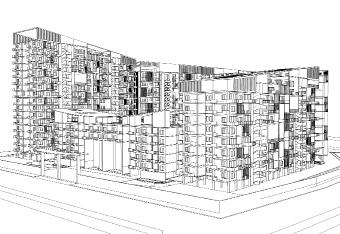 Green terraced spaces form a community space for the habitants giving the pleasant views of the adjascent hills. The central courtyard also acts as community space allowing all income groups to mix and live together.