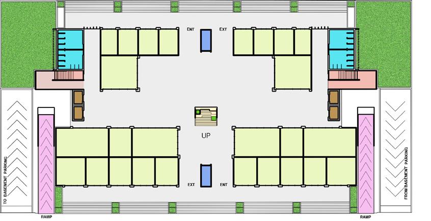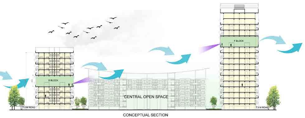 Elevators, fire staircases, toilets are strategically placed on eastern and western sides of building creating a buffer.