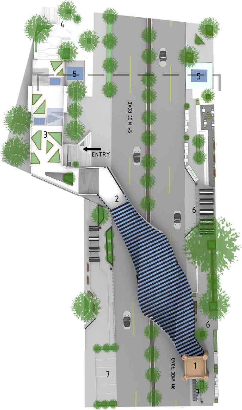 Plantation Layout Hardscape Layout Site Plan Site Section Section 1 Section 2 Section 3 Section 4 Section 5 Section through Atrium Roof Plan Second Floor Plan First Floor Plan 3 5 4 2 1