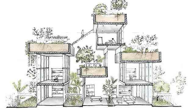 Green facades providing good light and ventilatiion and Creating pleasant environment in passages