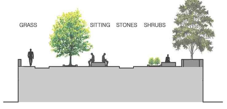 Washing area- Washing area is proposed, water of which area is recycled in layers of water treatment systems and reused in the landscape.