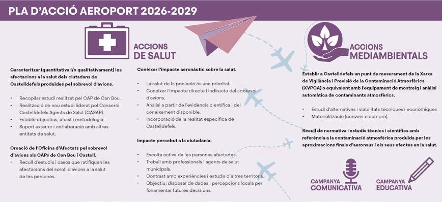 L’Ajuntament ha elaborat el projecte “Aeroport 2026-2029” per conscienciar i incidir en el greu problema de salut per a les persones que suposen els sobrevols d’avions sobre la ciutat, un problema que es veurà agreujat amb l’ampliació de l’aeroport de Barcelona-El Prat–Josep Tarradellas. El projecte contempla un pla d’acció que es desplega