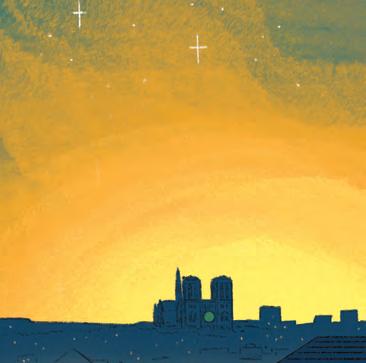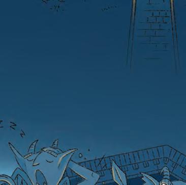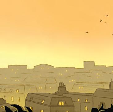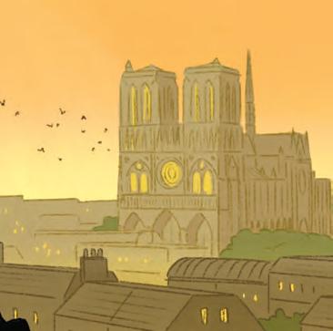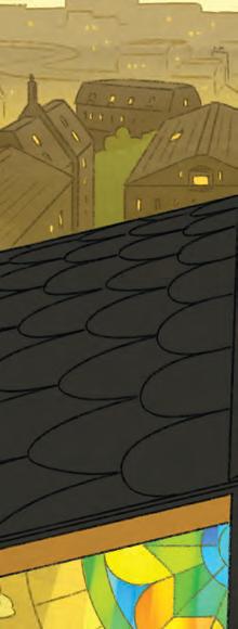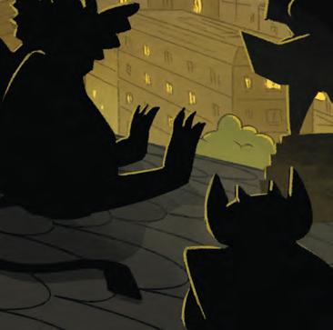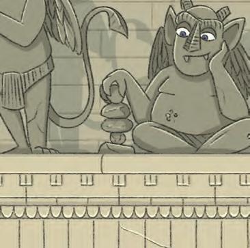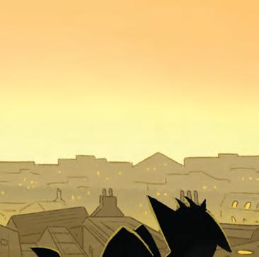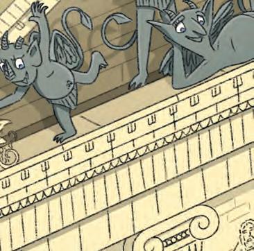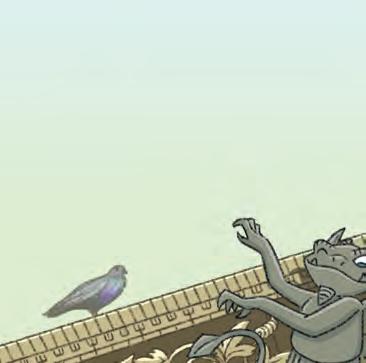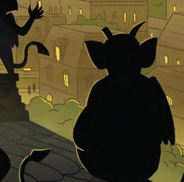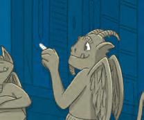 As twilight painted the sky over a stately library in France, its stone gargoyles . . . twitched,cracked , and s h u d de r e d to life.