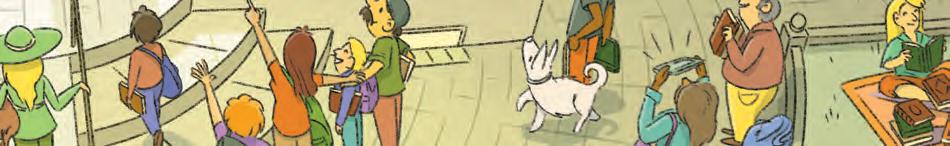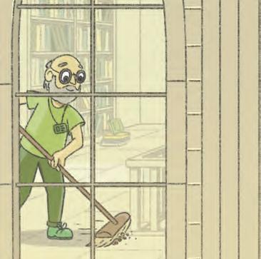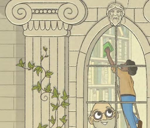 And even now, in a stately library in France, Grayson, the library guardian, spends his nights reading books in his special spot under a pointed arch.