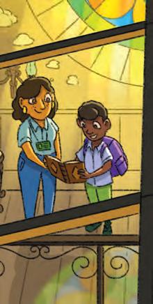 When Grayson awoke at dusk, he saw a stack of books, a library card for each gargoyle, and a thank-you note.