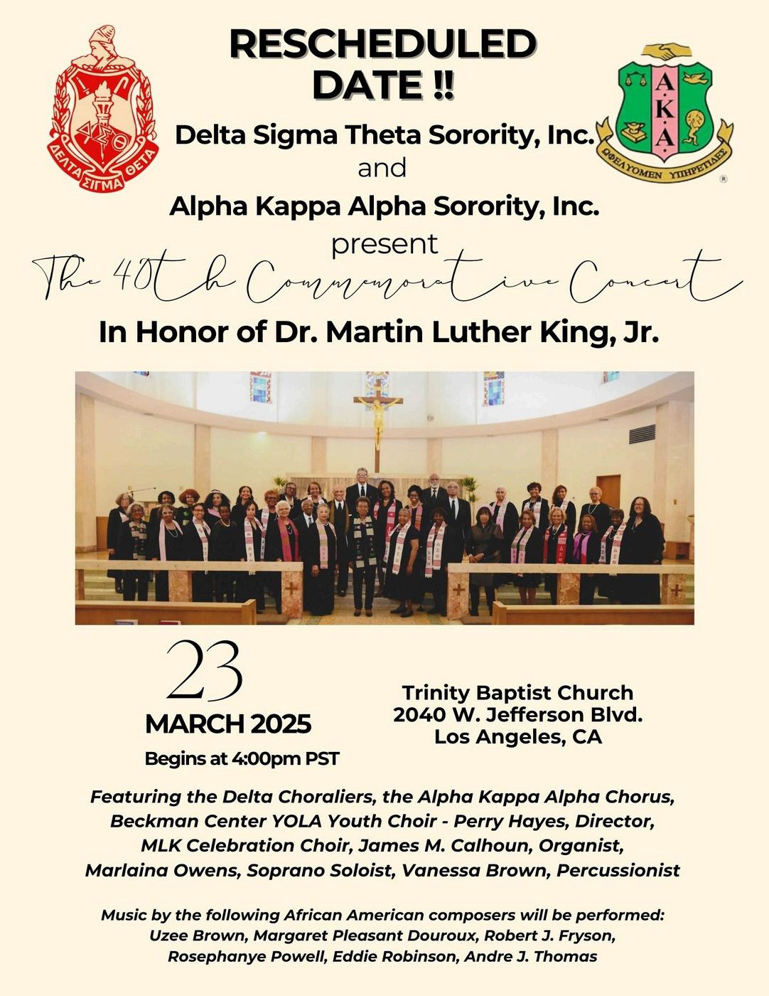 This spring, we also celebrate an extraordinary milestone within our sisterhood. Please join us in wishing Soror Odessa Brown a very Happy 103rd Birthday on March 1, 2025! Let’s shower her with cards and wellwishes to honor this incredible occasion. You can send cards to: Soror Odessa Brown, 390 S. Sepulveda Blvd #204, Los Angeles, 90049. Soror Brown’s life and legacy inspire us all to live with grace, resilience, and love.