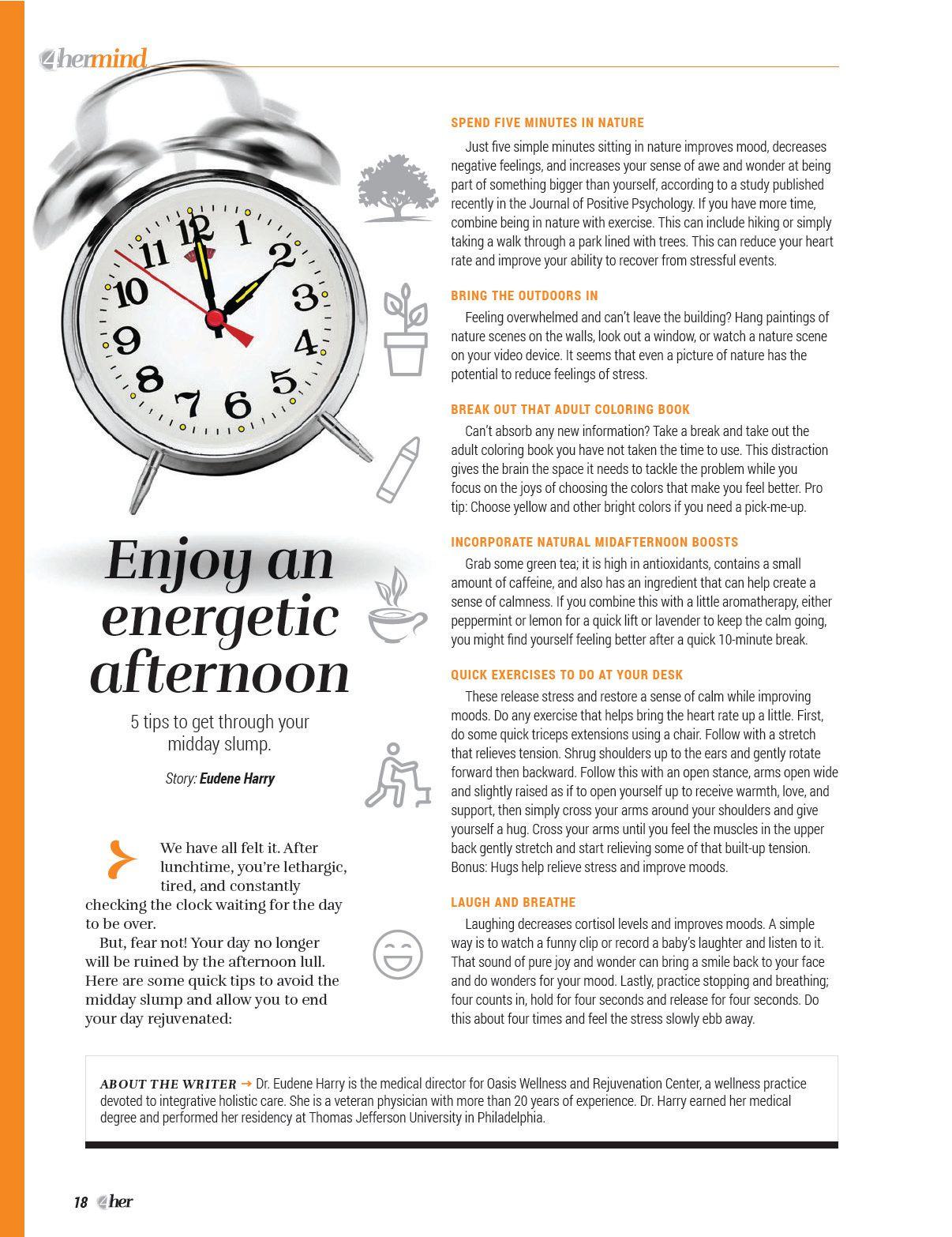 will eventually develop a physical condition,” says Dr. Maxine Ruddock, clinical director of Comprehensive Psychological Assessment Services in Tavares. “If you’re feeling stressed or have anxiety, you don’t want to exercise, you’re not going to eat right, and you’re not going to get adequate sleep.”