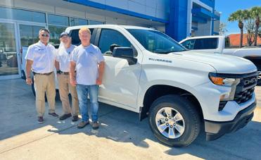 Dale Thompson from Precise Concrete & Masonry picking up his new 2026 Chevrolet Silverado from Roman Hernandez. Thank you Dale for your many years of business.