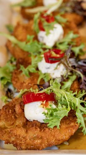 David wanted the drink menu to feel as intentional as the space, so they built a full martini program and keep re ning it, rounding it out with frozen and playful cocktails that match the laid-back atmosphere.