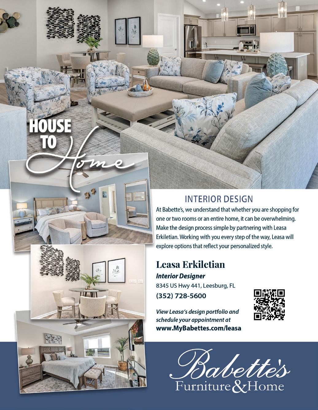 here is something special about the feeling of a new beginning. A new home represents more than fresh paint and modern nishes, it re ects lifestyle, growth and the future we imagine for ourselves and our families. That sense of possibility is exactly what inspired this issue of Lake and Sumter Style. This edition serves as our New Home Guide, created to help you explore what is happening now and what is coming next across Lake and Sumter counties. From thoughtfully planned communities to elevated design trends, this issue highlights the many ways homebuilding continues to evolve in our area. Whether you are building from the ground up, searching for a move in ready home or simply gathering inspiration, these pages are designed to inform and inspire.