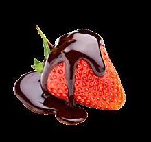Drizzle chocolate syrup into glass. Blend ingredients in blender with ice, pour into glass and garnish with chocolate and strawberry slices.
