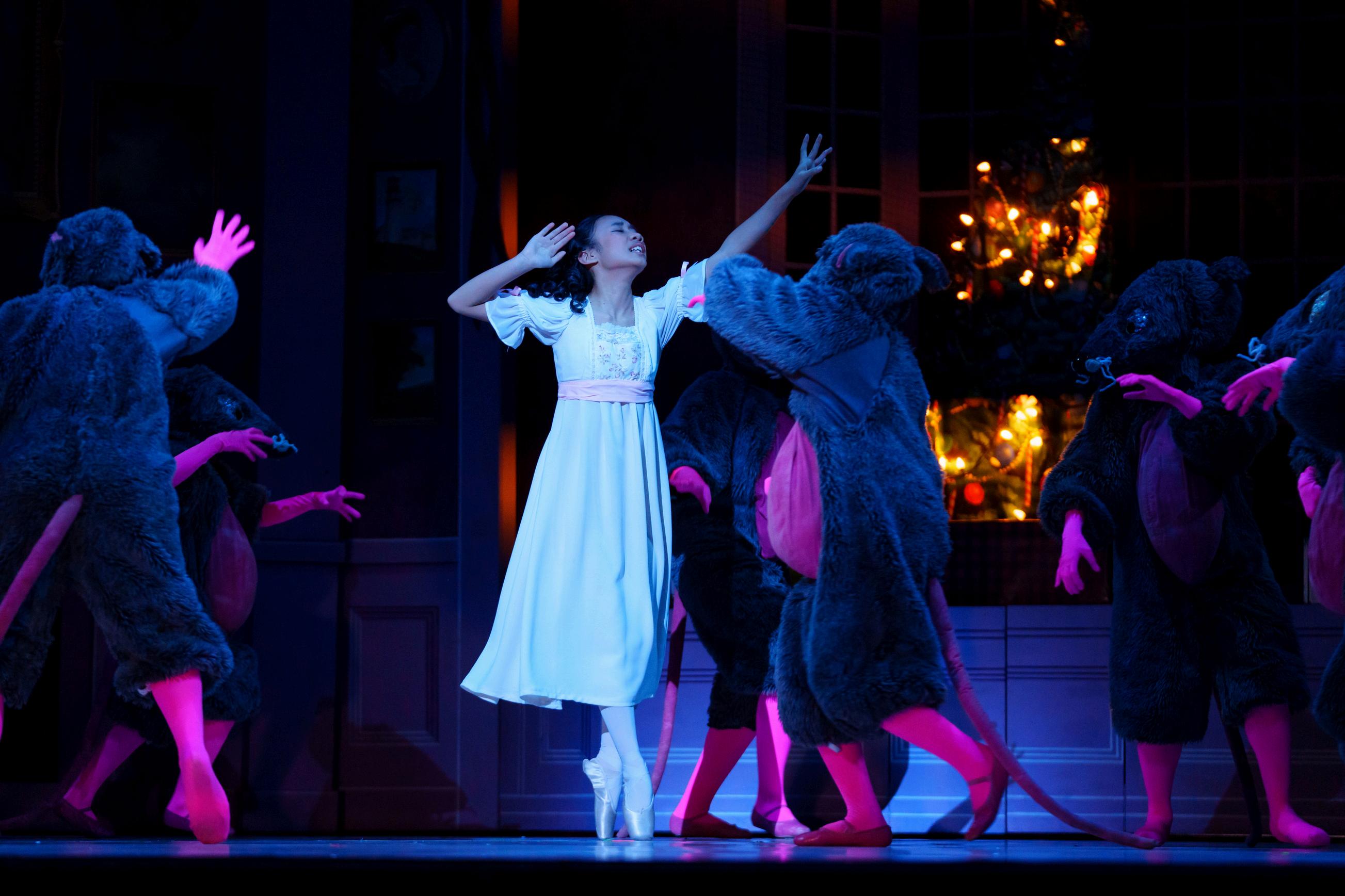 until, to her delight, the Nutcracker sprang to life. Brave and strong, he battled the Mouse King and his army to protect her. Just when it seemed he might lose, Drosselmeyer’s magic shone through again, enchanting Clara’s slipper. With it, she was able to save her Nutcracker and defeat the Mouse King.