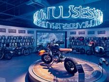 the fi rst fl oor, where some bikes are shown completely disassembled and others as during development with clay parts, 3D printed pieces and fully adjustable key elements such as frame geometry and pedal position. Also on display are some exceptional conversions, single- and limited-quantity serial-production ones, which sell out soon after launch. Then there is the obligatory shop with motorcycle equipment and souvenirs alongside a stylish bar with engines instead of paintings on its walls. On that day, at the beginning of March, the temperature gauge in my rented Volkswagen showed 7 °C, and yet there was not a table free during lunchtime; motorcycles from very different brands congested the parking lot. Most were, obviously, Triumphs, perhaps even some from the Tiger 900 range, unveiled in October 2023, where customers can choose an Akrapovič exhaust when ordering the new 900 GT, GT Pro or Rally Pro versions. If you’re ever in the vicinity, also visit the National Motorcycle Museum, Britain’s largest motorcycle museum, located