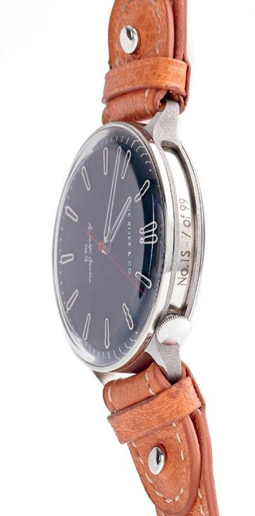 Everything is mechanical. No electronics. The movement hasn’t changed much in history. However, innovations and changes are a constant in Laurens’s thinking. “We joined forces with a well-known automotive illustrator to design the latest series of watches.” Guy Allen, who works with brands like Porsche, drew the dial plates for the series, with the motives of earth, water and air. The series will consist of 75 pieces – 3 times 25 watches. “The first one will come with the silhouette of the Lancia Aurelia, the second with the design lines of the Riva yacht and the third with the stylised image of a Macchi plane landing on water.”