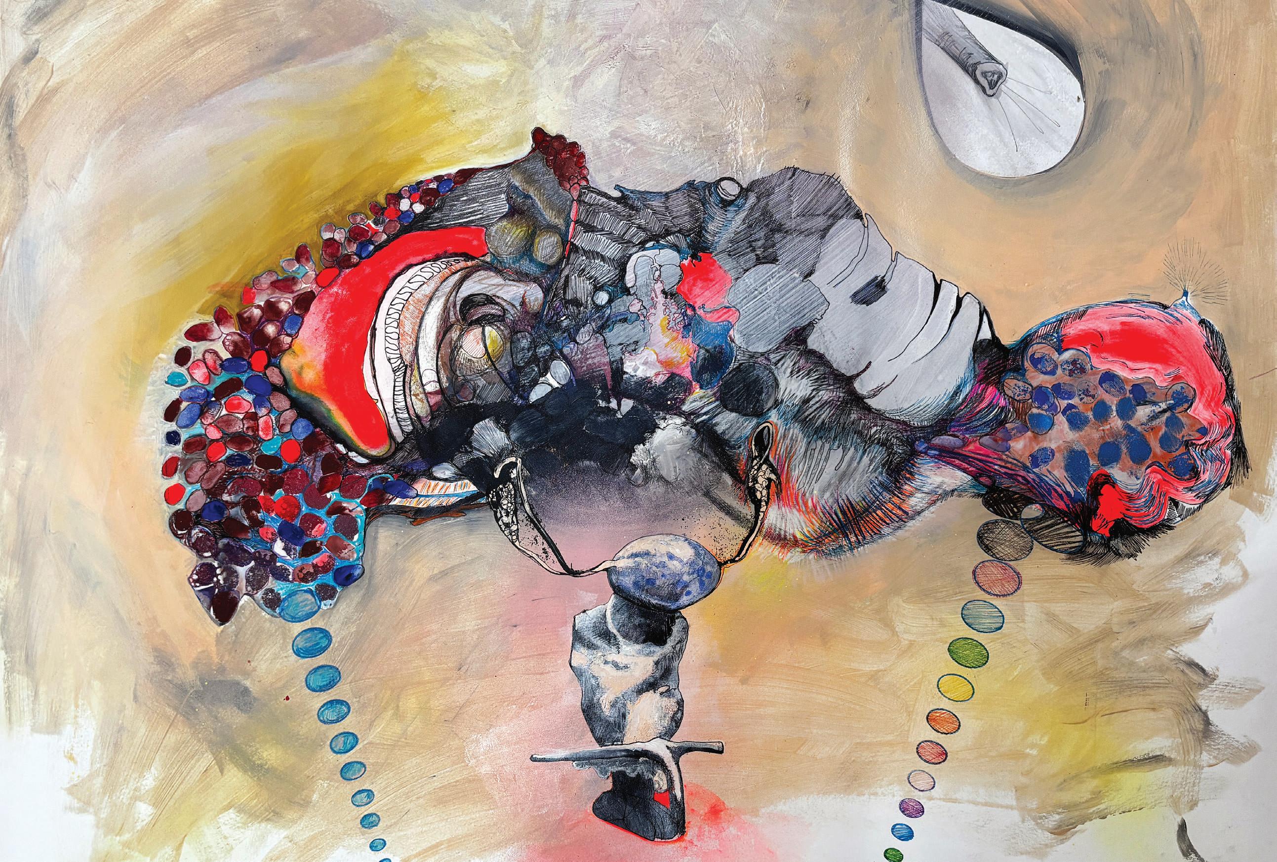 “None of us really know what we look like inside,” 2024, mixed-media drawing, 22-by-30 inches, provided by Kent State University