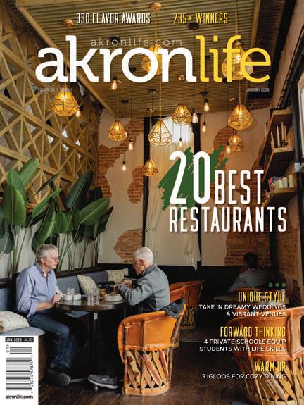 Subscription rates: Continental U.S., One year —$19.95, Two years —$34.95. Call for Alaska, Hawaii or international rates. Single issues available by calling the circulation department or visiting akronlife.com/store. $4.95 each plus $3.50 shipping & handling. Editorial, advertising and business offices: (330) 253-0056, fax (330) 253-5868.