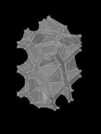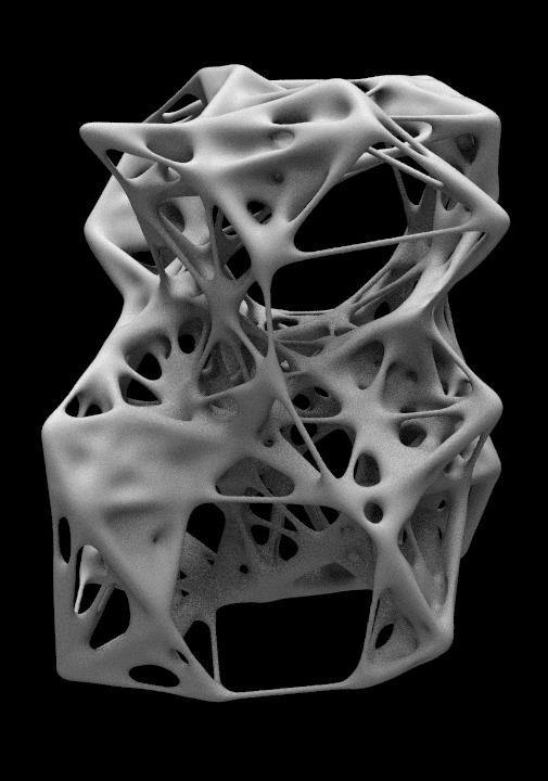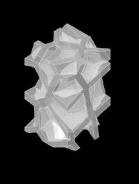 THE LIMITATION OF HAVING STYROFOAM PIECES STUCK IN THE CURED PLASTER FORM IS OVERCOMED. BRINGING THE PROCESS IN THE DIGITAL REALM ALLOWED FOR THE EXTRACTION OF AN ORGANIC FORM WHICH SUCCESSFULLY REPLICATES THE BONE MATRIX INSTEAD OF HAVING A SOLID FORM. DECREASING POINTS CREATED LARGER VORONOI FORMS THEREFORE RESULTING IN LARGER HOLLOW SPACES IN THE EXTRACTED FORM, WHICH REPRESENTS SEVERITY OF OSTEOPOROSIS.