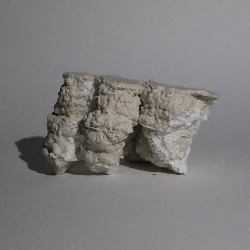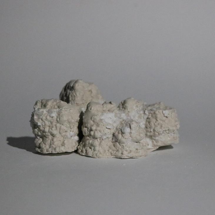 SERIES C WILL OBSERVE THE ABSENCE OF BONE MATTER IN AN OSTEOPOROTIC BONE. DECAY IS ALWAYS OBSERVED THROUGH ITS DETERIORATED FORM THUS THIS SERIES WILL ATTEMPT TO EXTRACT THE NEGATIVE FORM OF THE DECAYED BONE. THIS WILL BE OBSERVED THROUGH USING THE DECAYED FORM OF THE STYROFOAM BLOCKS AS A MOLD FOR PLASTER TO EXTRACT THE NEGATIVE FORM.