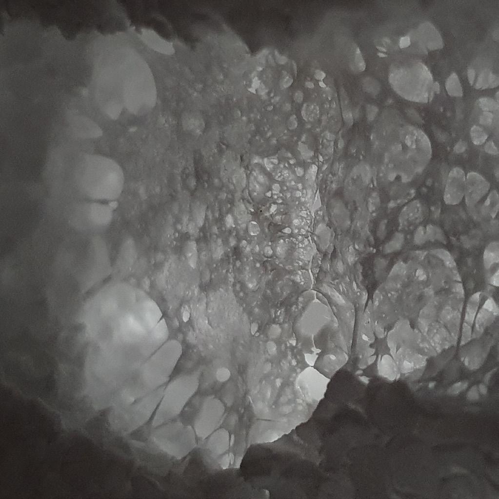 SERIES B EXPLORED THE CHARACTERISTIC FORM OF OSTEOPOROSIS WHICH ARE THE LARGE SPACES IN THE BONE MATRIX SEEN IN A CROSS-SECTION OF AN OSTEOPOROTIC BONE. PATTERNS OF SPOTS ARE EXTRACTED FROM SERIES A TO INFORM THE DECAYING SPOTS WHERE THE ACETONE (DECAYING SUBSTANCE) WILL DROP TO THE STYROFOAM (BONE MEDIUM), CREATING A POROUS FORM.
