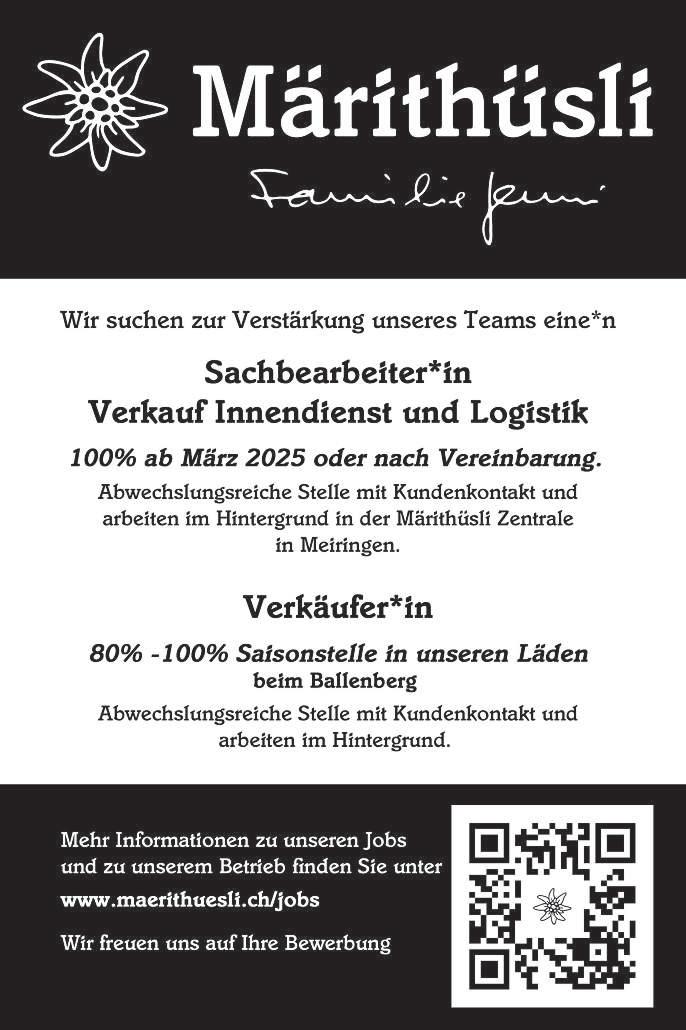 Weitere Auskünftebei SandraMathis,079 569 22 30 Bewerbung mitFotoper Mail aufinfo@wischweg.ch