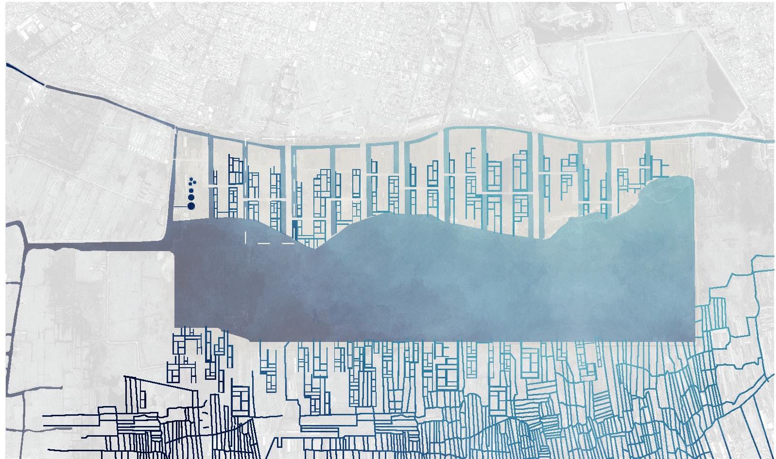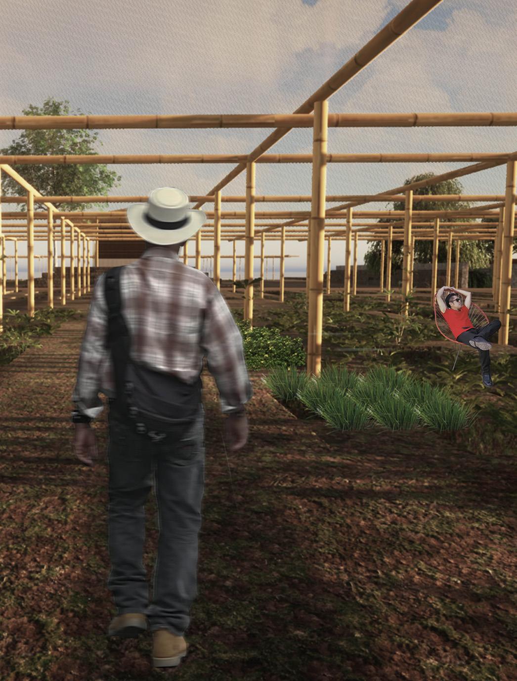 Located in one of the most marginalized areas of Mexico City, Cuauzholli Regenerative Park, seeks to restore the landscape of the long-lost lake city, Mexico Tenochtitlan. The project pursues the intervention of one of the Natural Protected Areas (ANP-EXSGA) of Mexico City, defined as a cultural heritage site by UNESCO in 1987. Cuauzholli intervenes in the territory, converting it into a resilient respiratory system within the city. The landscape is transformed into an urban cultivation infrastructure reactivating the endemic canal and Chinampa’s agricultural system. Artificial wetlands and compost beds will become the new ephemeral landscape. The project was created with a progressive design for 40 years, which intends to achieve the total restoration of this devastated ecosystem. As a complementary program, Cuauzholli is composed of four subsets: compost plant, living museum, lake market, and a humanary. Each of them is designed by the replication of a bamboo roof prototype, which adapts to different scales, heights, and modules. Being bamboo an organic material, after 40 years of this master plan, the architecture will degenerate to become compost beds, forgetting the architectural elements that once configured the site and leaving nothing else but a regenerated unique landscape.