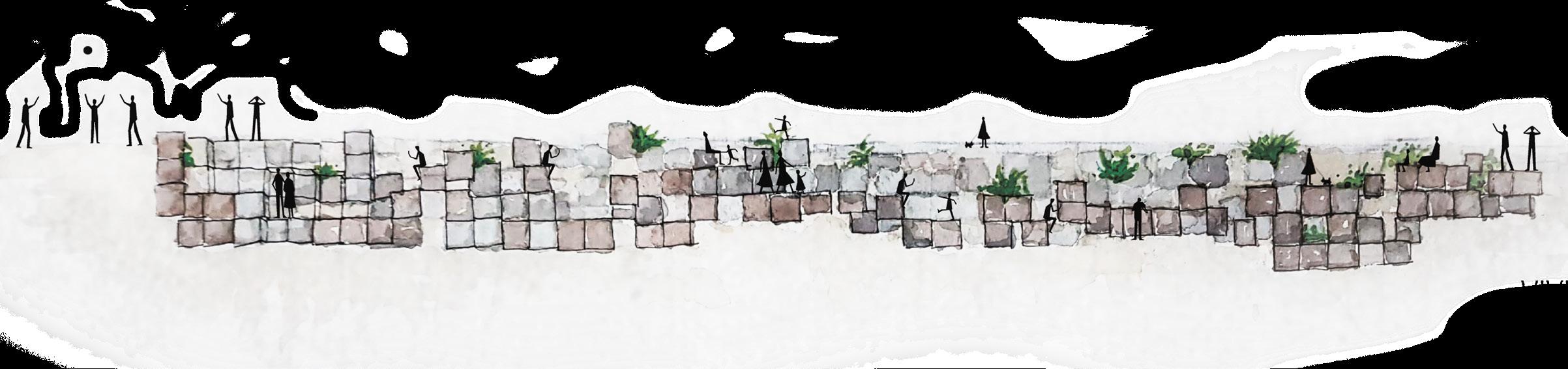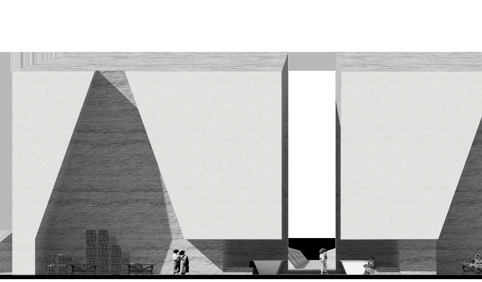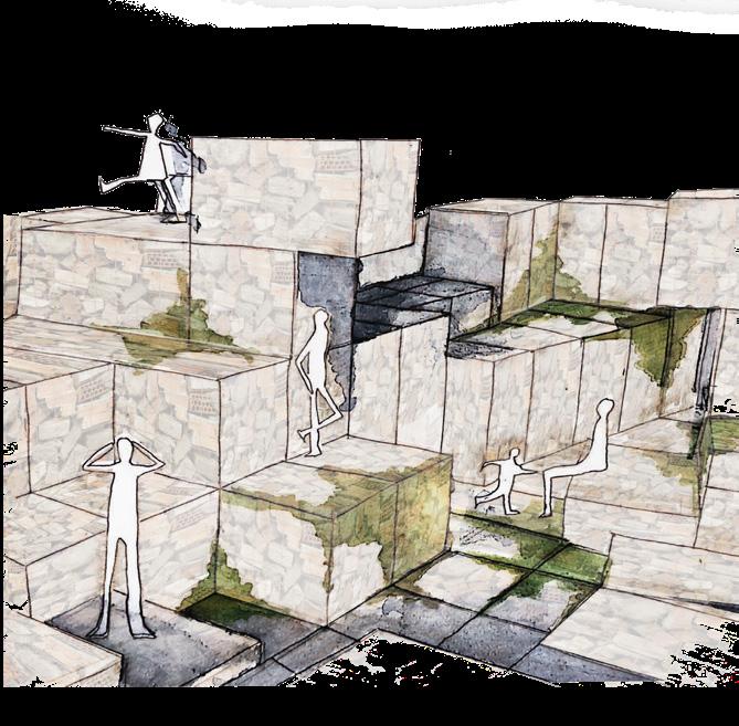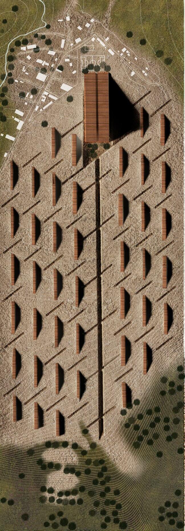 1. Primary circulation trech digging Tinacal longitudinal section Pulquería longitudinal section 10 30 100 m0 Floor planSmoky green sea perspective 2. Secondary alley treching 3. Slopes as complementary circulation 4. Landscape system replica Constructive Phases