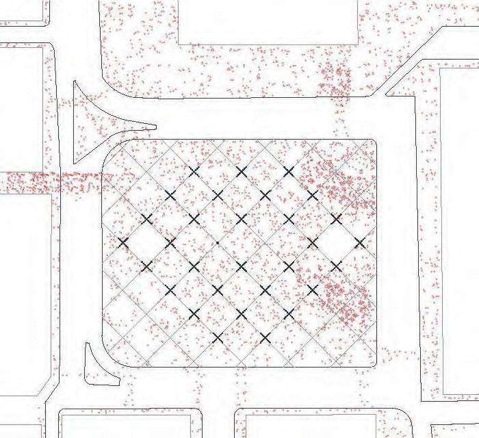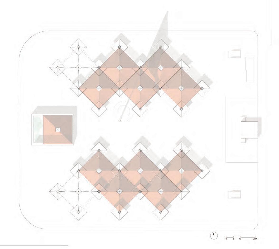 pedestrian circulation flow diagram sun orientation exploted roof design structural permeability