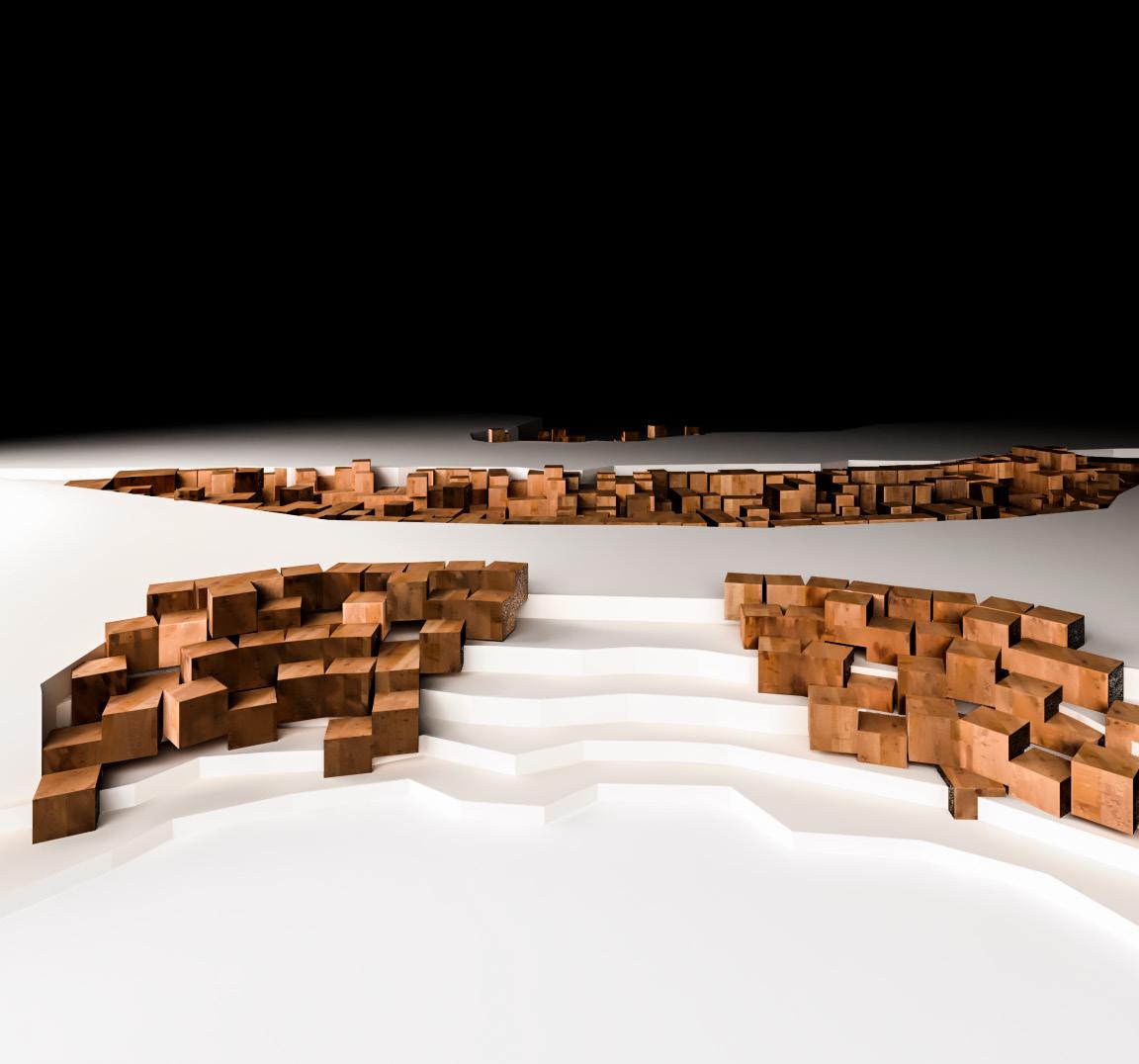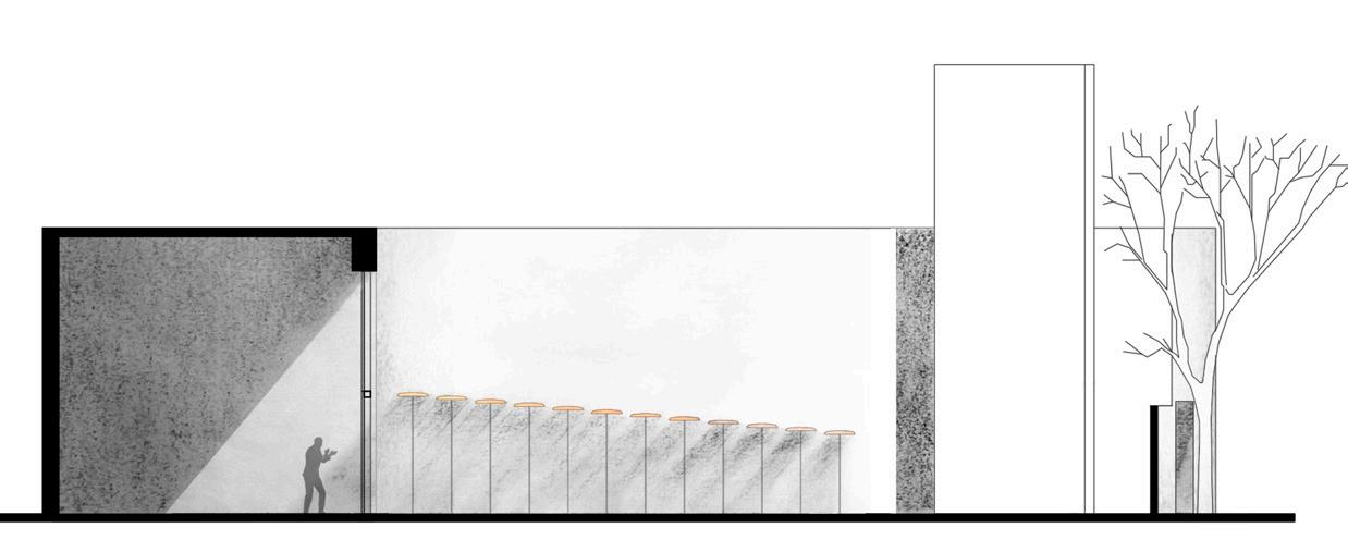 CopperSKIN is a pure element that is molded based on fire and hammer, it keeps an alchemy that is revealed when it comes into contact with the sun. We hold in the highest esteem the craftsmanship that brings it to light. Goeritz’s stele becomes an exempt witness of this skin that came to reflect it. It is discovered from the street, as a reflection in the three existing gray walls, at the end of the long access corridor as a first reflection in the ceiling of the museum. The shape of the plate is designed to allow sounds and resonances, echoes of a silent architecture. conceptualfacadelongitudinal architectural