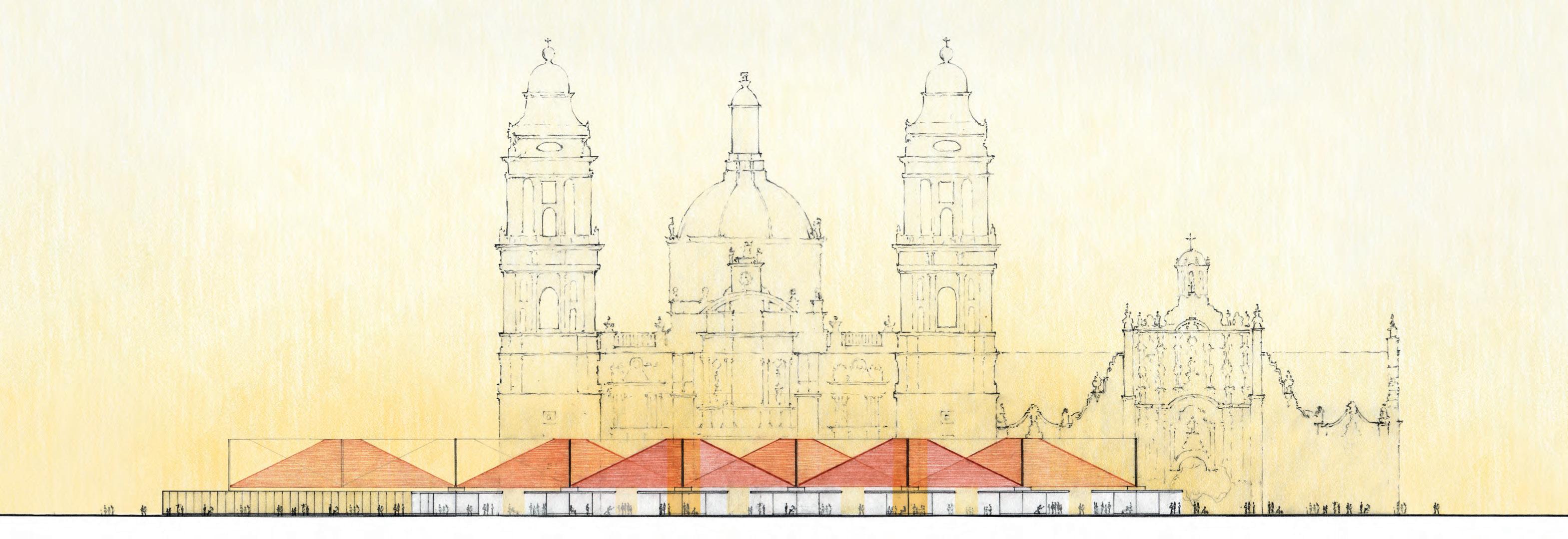 longitudinal section contrasting with the monumentality of the Metropolitan Cathedral of Mexico City