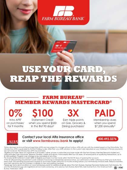 DISCLAIMERS: Advertisements in Neighbors do not represent an endorsement by the magazine or Alabama Farmers Federation. Editorial information from sources outside the Alabama Farmers Federation is sometimes presented for our members. Such material may, or may not, coincide with official Alabama Farmers Federation policies. Publication of information does not imply an endorsement by the Alabama Farmers Federation.