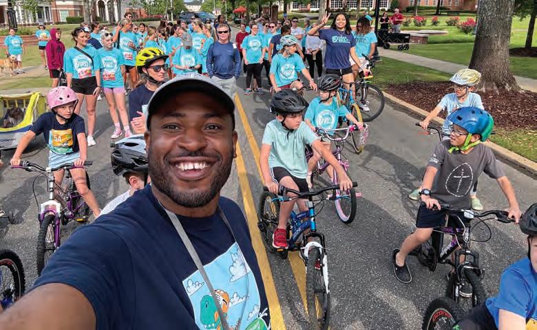 RIGHT: Little riders are ready at the starting line for the first O’s Cool Bike Ride and Walk at Troy University in 2023. PHOTO COURTESY OF ALIZA CHAMBERS